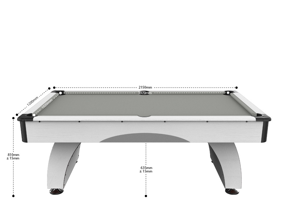 Billard Dallas 7 pieds - Coloris Blanc boisé tapis gris