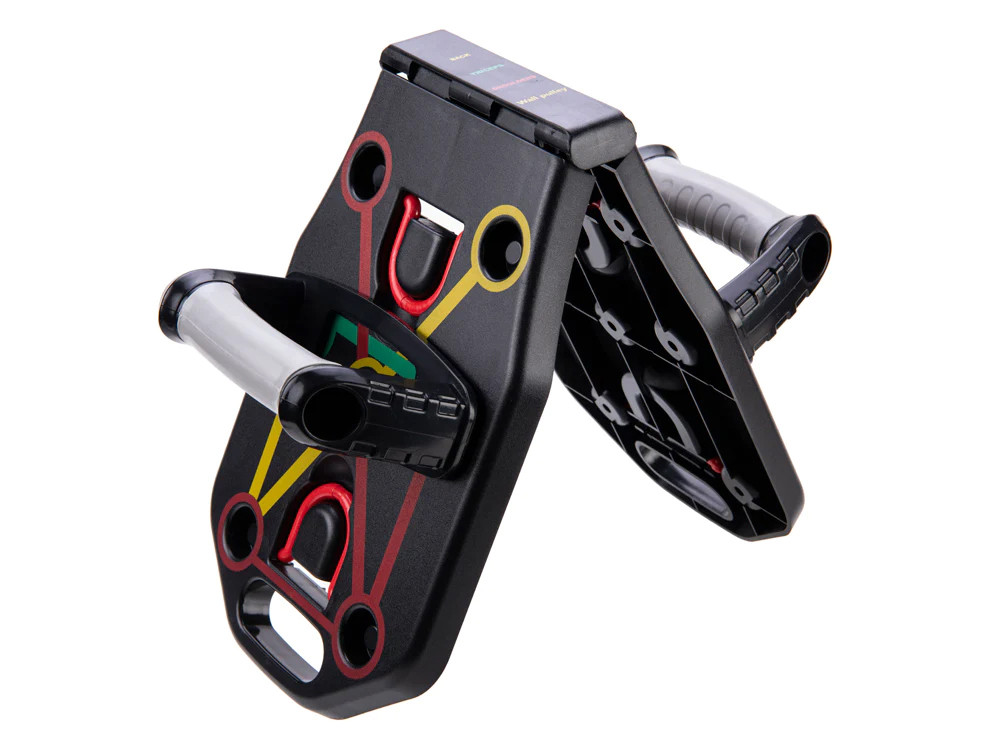 Véritable phénomène auprès des amateurs de culture physique, cette planche Push-up 9en1 vous permet de travailler la partie haute de votre corps à travers différentes positions ciblées et identifiées à travers un code couleur bien défini.